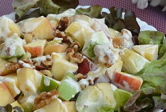 Si bien la ensalada waldorf original no lleva crema, esta suaviza a la mayonesa y, a mi gusto, mejora en mucho el sabor. Tenía bastante tiempo que les quería compartir esta deliciosa ensalada waldorf. Esta ensalada waldorf es un clásico de la cocina y un platillo de gran popularidad y fama. La original sólo tenía apio y manzana. Se puede servir con pasas para dar un toque dulce o con queso roquefort para hacerla aún más salada y sabrosa.