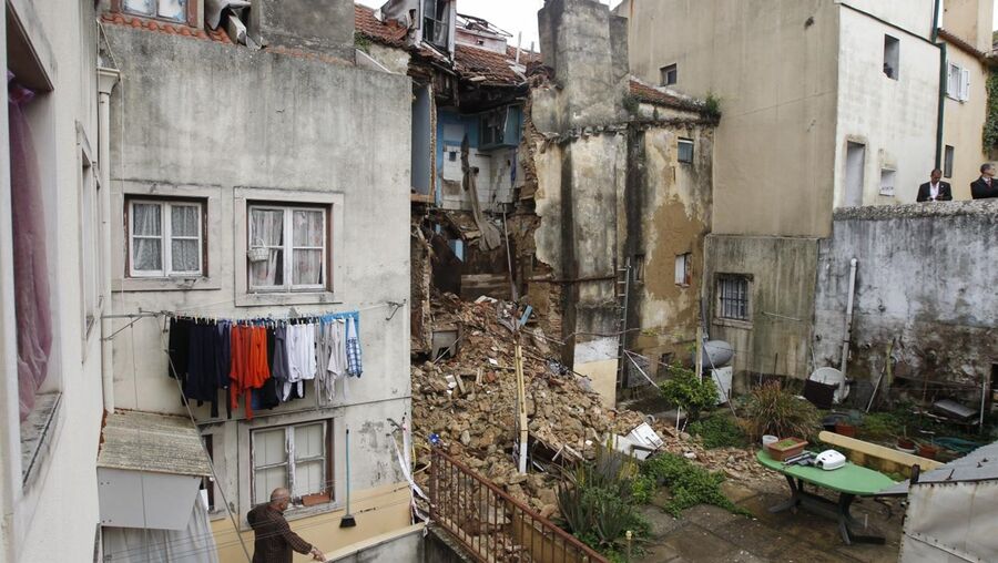 Um prédio de habitação desabou após uma explosão, este domingo de manhã, no centro de lisboa.